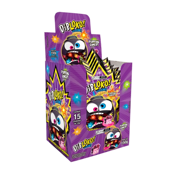 Informações do produto: 01825 - DIPLOKO MINI BOOM UVA 15X10G - 01825