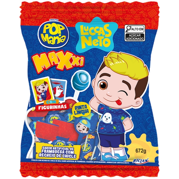 Informações do produto: 01909 - PIRULITO POP MANIA MAXI LUCCAS NETO FRAMBO. 24X28G - 01909