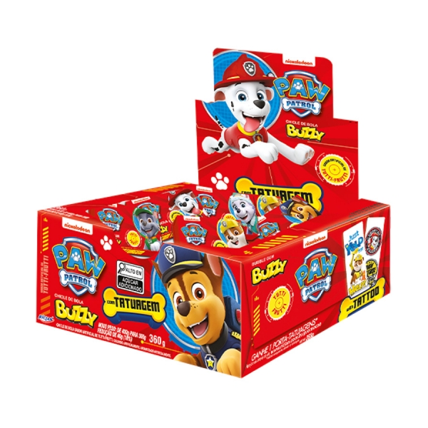 Informações do produto: 01939 - CHICLE BUZZY PATRULHA CANINA TUTTI FRUTTI 90UN - 01939