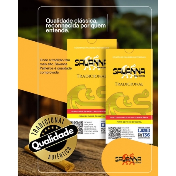 No mundo dos palheiros, poucos nomes carregam tanta presença quanto o Savanna Tradicional. Feito com cuidado artesanal, ele entrega um aroma inconfundível e um sabor encorpado que conquista no primeiro contato.